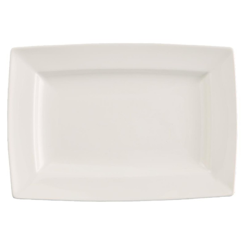 Rectangular contemporary 13x 9" plates from the Alchemy Energy range by Churchill designed to integrate with the Alchemy White range have an urban chic elegance to them. All crockery in this range is easily stackable and features a glazed foot to protect surfaces against scratching.