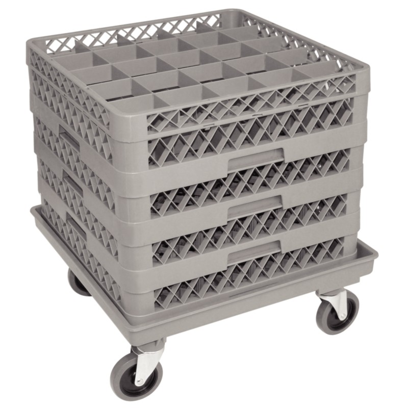 Dishwasher rack dolly constructed from sturdy polypropylene.