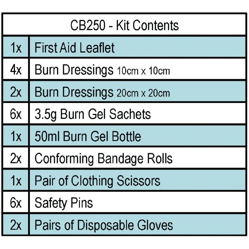 Burns kit contains high quality dressings for immediate applications to burns including a workable selection of gels dressings and other ancillary items for effective first aid from minor to severe burns.