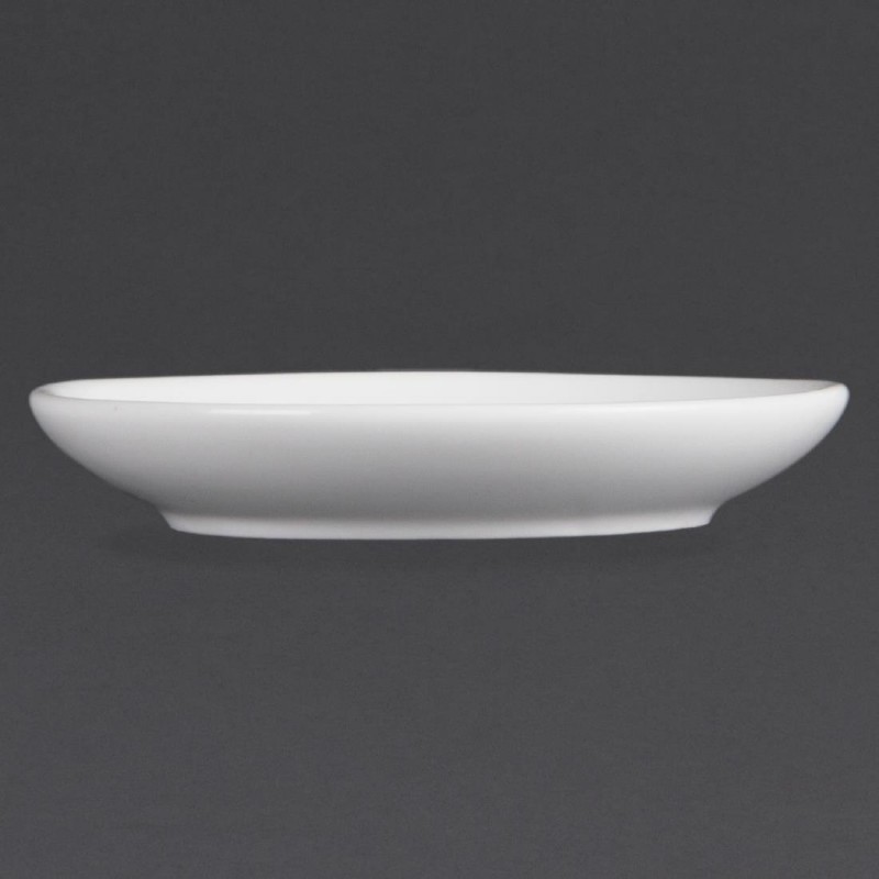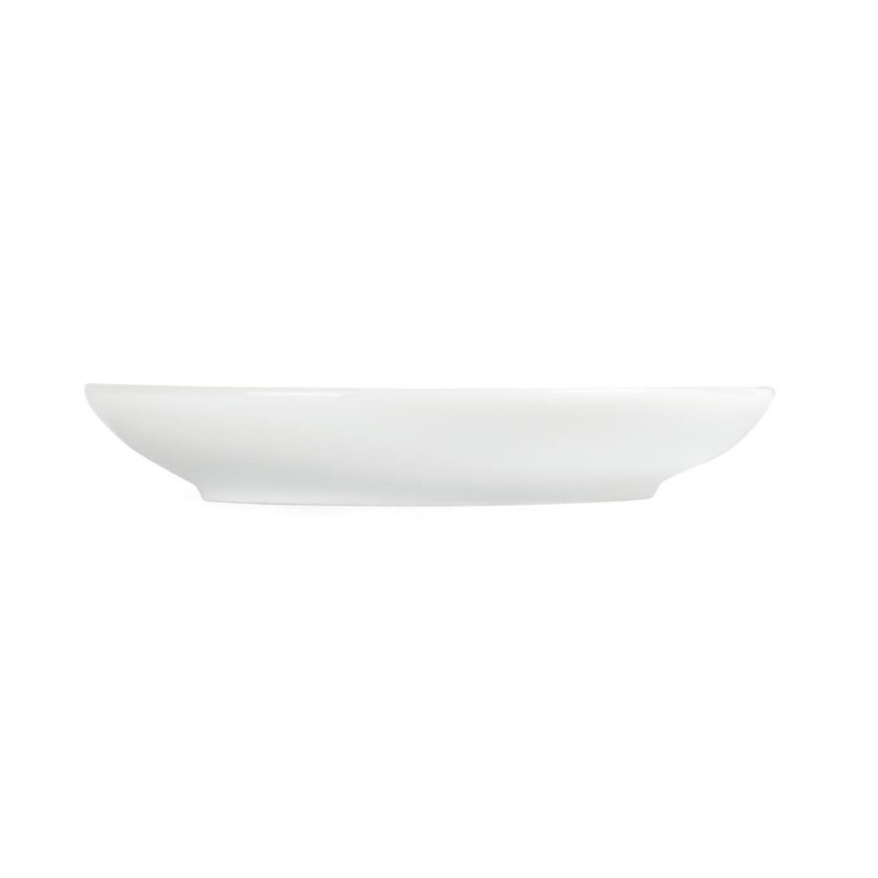 Our great value pure white porcelain espresso saucers by Olympia are fully vitrified for heat and shock resistance the ideal crockery for hotels which want simplicity. This item is guaranteed by the Nisbets Edge Chip Warranty.