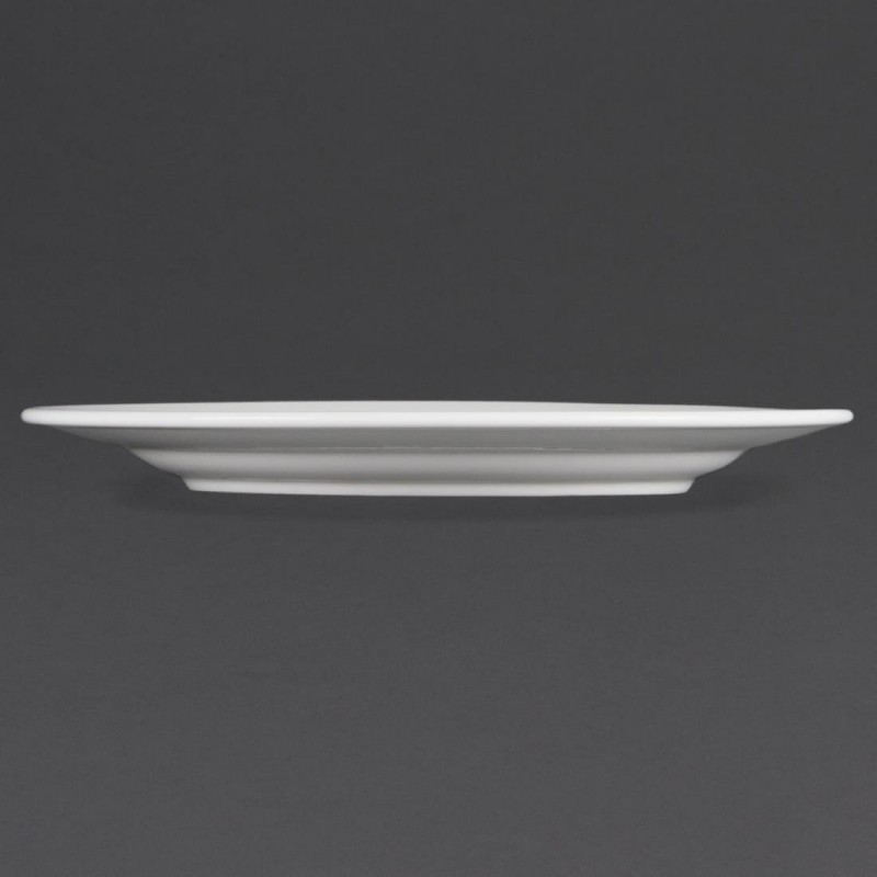 Our great value pure white porcelain wide rimmed plates by Olympia are fully vitrified for heat and shock resistance the ideal crockery for hotels which want simplicity. This item is guaranteed by the Nisbets Edge Chip Warranty.