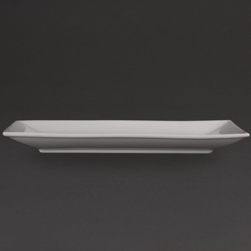 Quality porcelain by Olympia for your day to day catering needs these rectangular serving platters feature strengthened rolled edges and are fully vitrified for chip resistance the perfect crockery for dinner service.