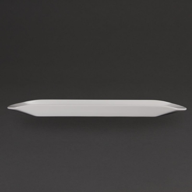 Our great value pure white porcelain gondola large platters by Olympia are fully vitrified for heat and shock resistance the ideal crockery for hotels which want simplicity. This item is guaranteed by the Nisbets Edge Chip Warranty.