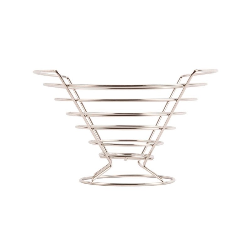 An unusual and striking stainless steel wire basket which is perfect for displaying fruits for use during buffet service or countertops.
