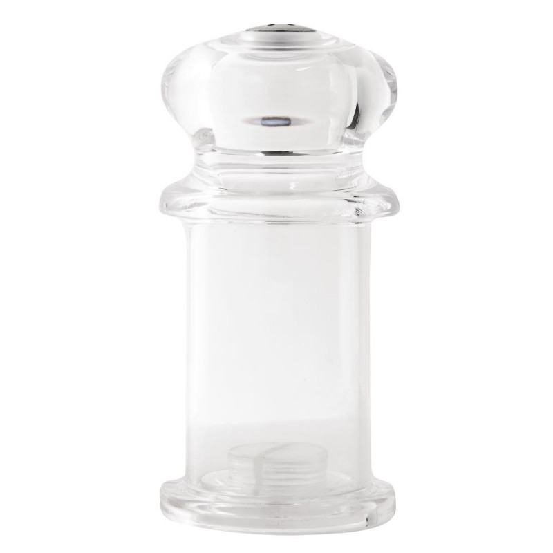 Large acrylic salt shaker ideal for tabletop use and paired up with the pepper mill it will complete your set.