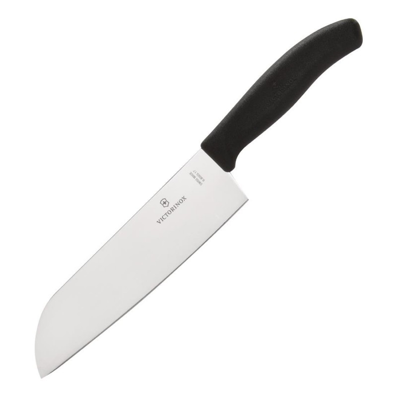 Finest quality Swiss professional knives the result of over 100 years experience. This Victorinox Santoku knife has a high quality razor sharp stainless steel blade with a unique anti-slip nylon Fibrox handle. It is dishwasher safe.