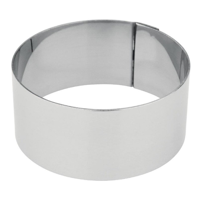 Suitable for small single portions this mini gateaux mould from Matfer will produce small round circles. Perfect for use on buffet plates or as canaps. Moulds are made from stainless steel meaning they are incredibly sturdy and can therefore withstand constant use in a commercial kitchen.