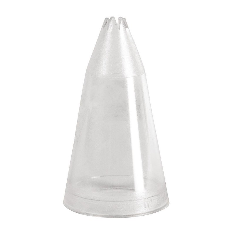 This star shaped piping tube has a very fine opening making it suitable for intricate icing work. You will be able to create a variety of shapes and patters that will look great on large cakes as well as smaller desserts. Constructed from high quality shatterproof polycarbonate it is completely safe to use around food. Height 60mm approx.