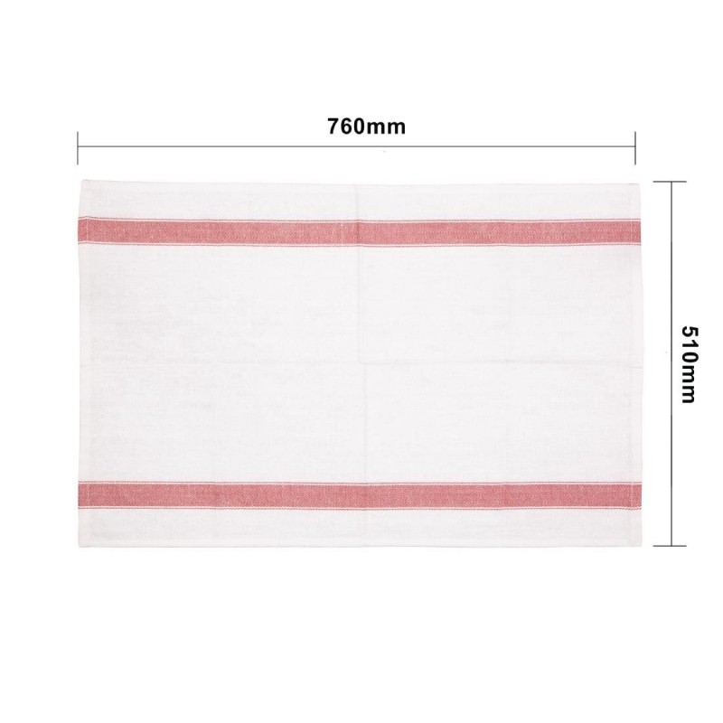 Produced in a red colourway, the Vogue tea towel allows for colour coding in the kitchen to help you avoid cross contamination and improve hygiene. Made from 70% cotton & 30% polyester, this thick and absorbent cloth is heavy duty and can easily withstand the demands of any busy commercial kitchens, whether it is a café, restaurant, hotel or canteen. At 30"x20", this low-cost towel is perfect for drying tableware of all sizes or performing any other kitchen cleaning duties. Product features