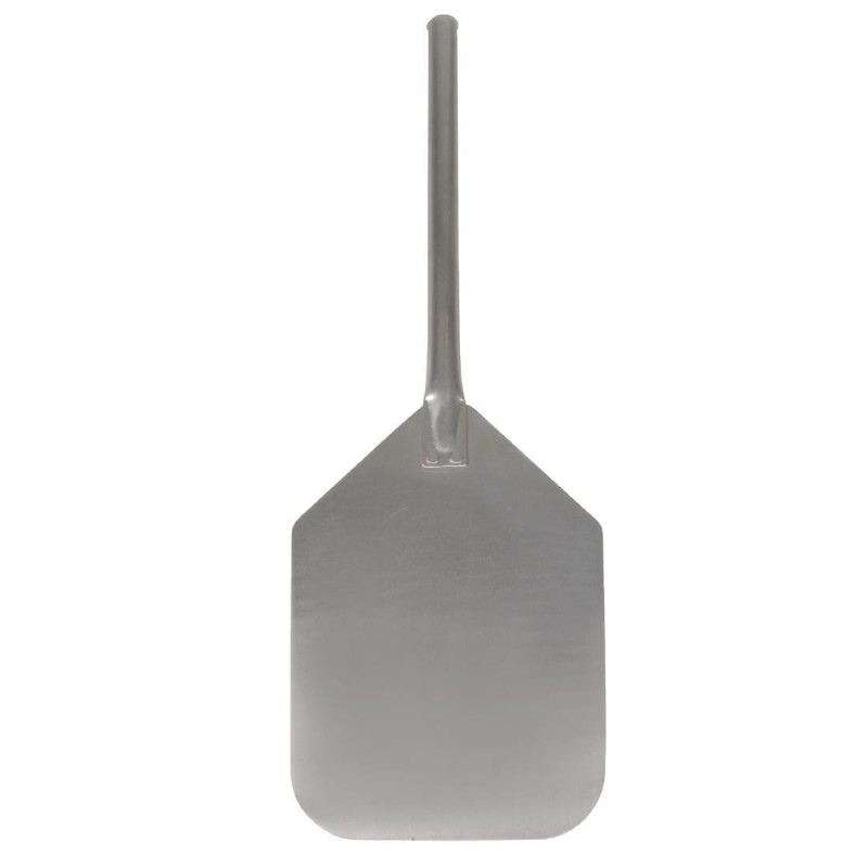 Peels for easily placing pizzas in or removing from hot ovens. Small peel features aluminium handle and 9 x 6" blade.