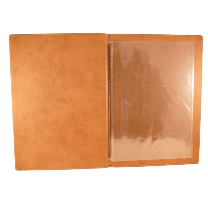 Collection of contemporary Menu holders available in various colours and sizes. Made from soft feel synthetic leather anti-scratch and washable with water and soap. Fitted with 1 insert displaying 4 pages back to back.