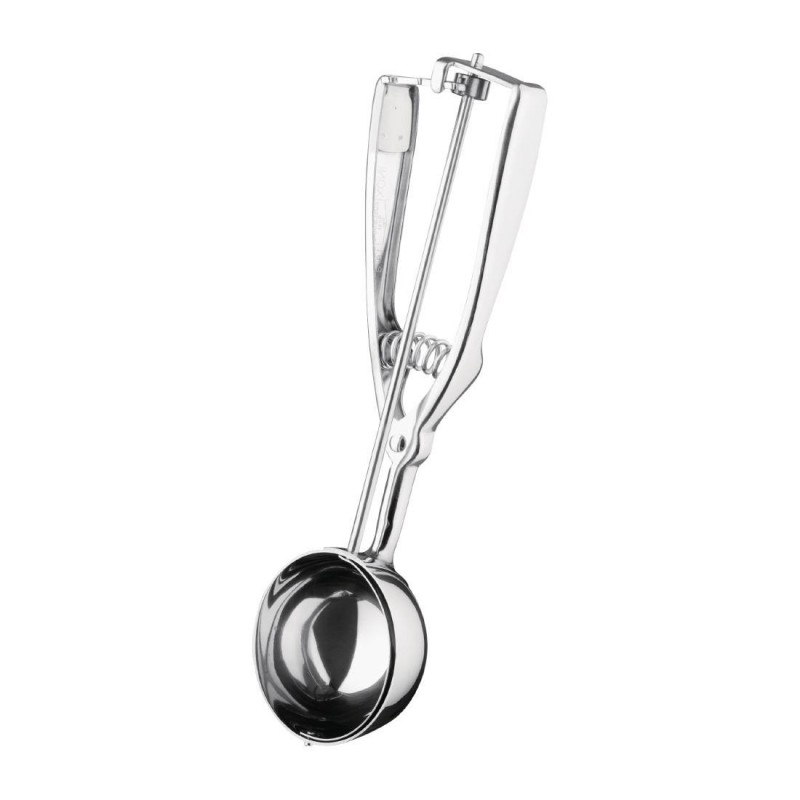 This high quality stainless steel portioner is suitable for use with all manner of dishes from ice cream to mashed potato rice and more. This scoop features a spring loaded handle for quick portioning.