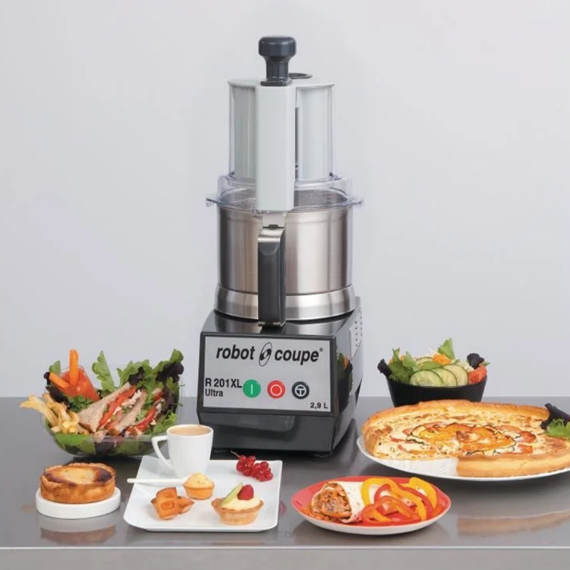 Super-charge your prep with the Robot Coupe R201XL Ultra food processor. Designed for the toughest of kitchen tasks, the R201XL makes light work of prepping a huge variety of foods, from meat and vegetables, to fish, cheese, pastry and even ice. The powerful single-speed motor can handle even the toughest of root vegetables without slowing down, making the Robot Coupe ideal for high-output work, even during busy services.
