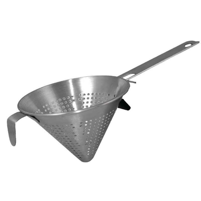 This Vogue conical strainer is made from stainless steel and has a useful hook to hold it in place when being used with pots and pans. Ideal for use in the home or in professional kitchens this strainer has a long handle for ease of use.
