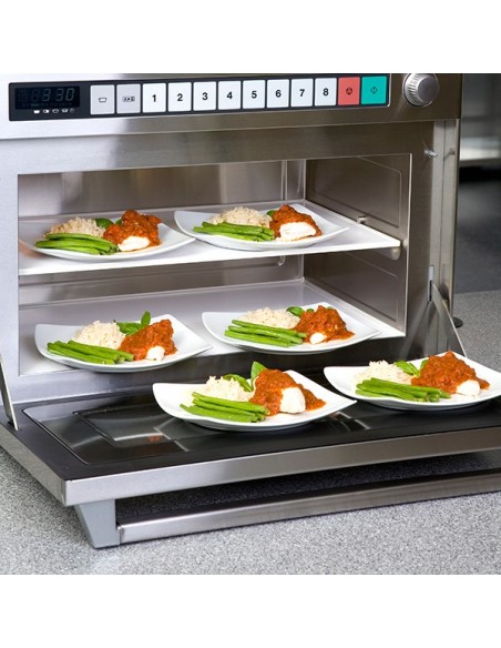 The Panasonic 1800W Microwave Oven NE1880 BPQ is a large heavy duty stainless steel manual microwave oven. Highly powerful robust and with an impressive capacity this microwave oven is certain to not only impress with its speed but also its consistency. These ovens are suitable for busy commercial kitchens that require a cooking machine capable of a large output.