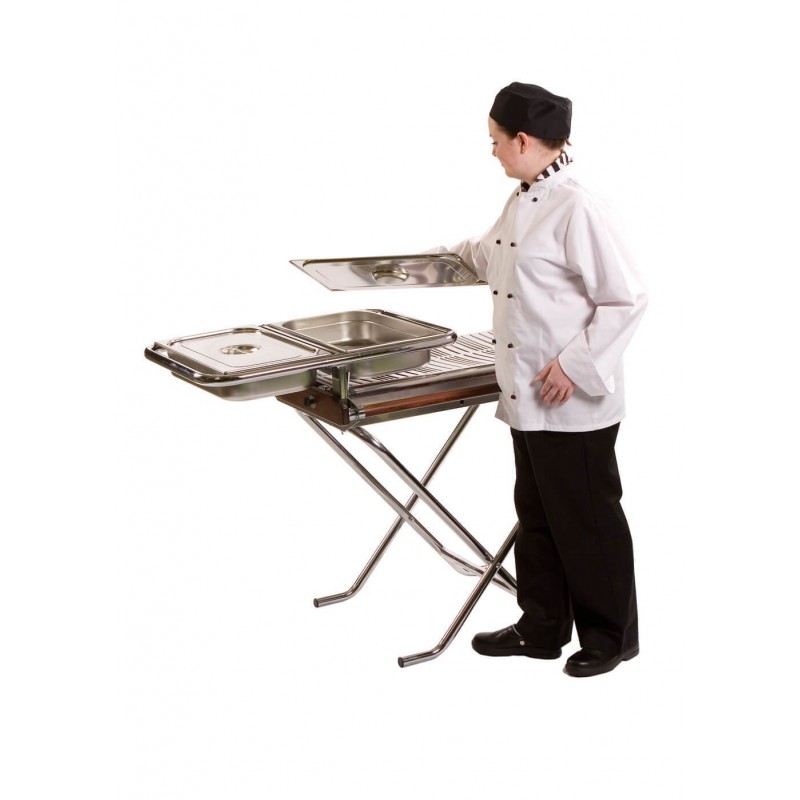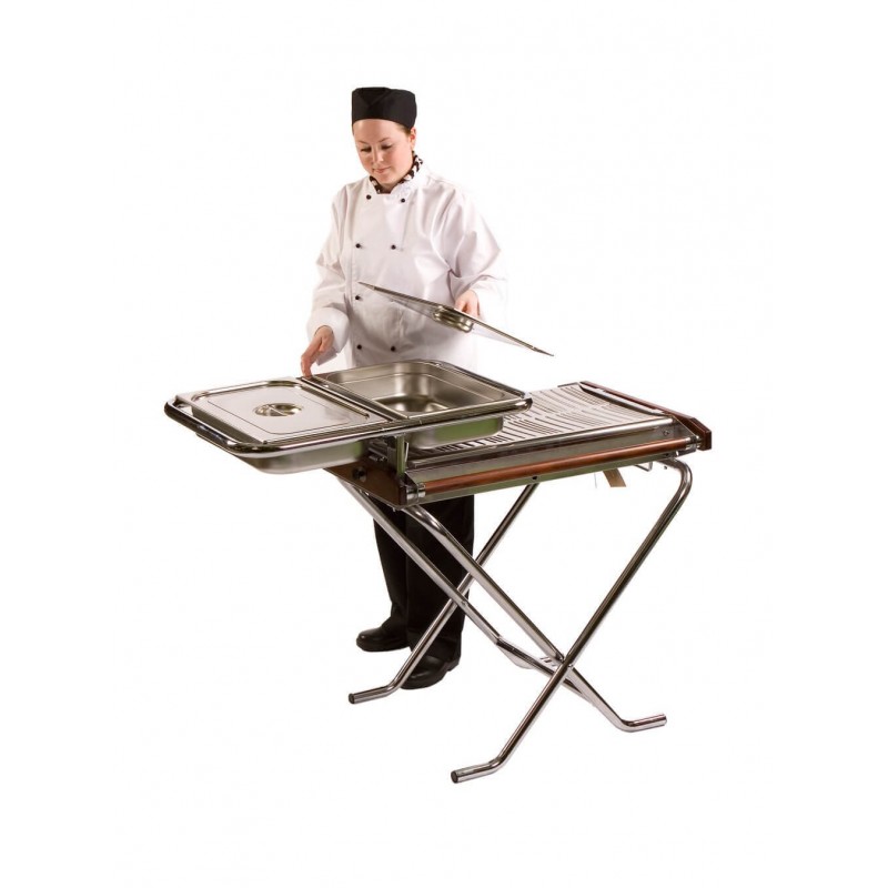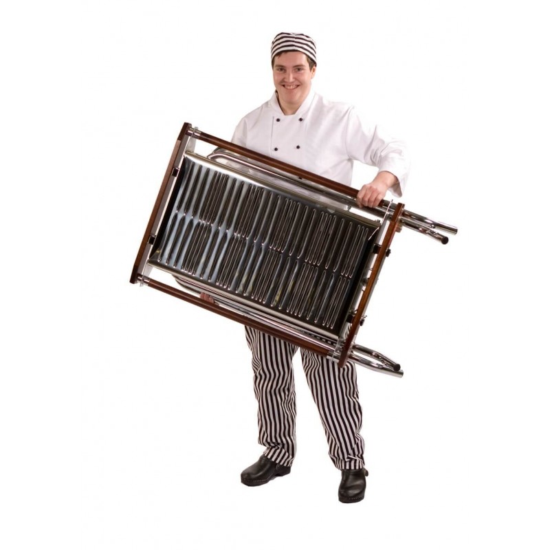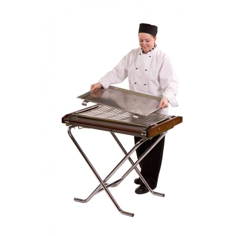 Cinders' high quality easy to use stainless steel propane barbecue is ideal for all outdoor catering occasions. It features a chrome plated folding frame making it easily portable and it comes supplied with propane gas bottle attachments. It is lightweight flexible and folds for easy transportation and storage ensuring that this Cinders bbq is the ideal cooking appliance for the outdoor caterer on the go.