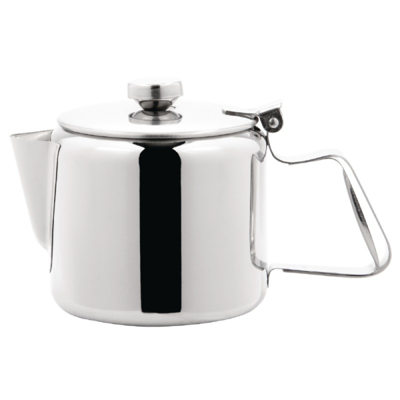 Simple range of hot beverage service items in highly polished stainless steel. Pots feature heat resistant handles.