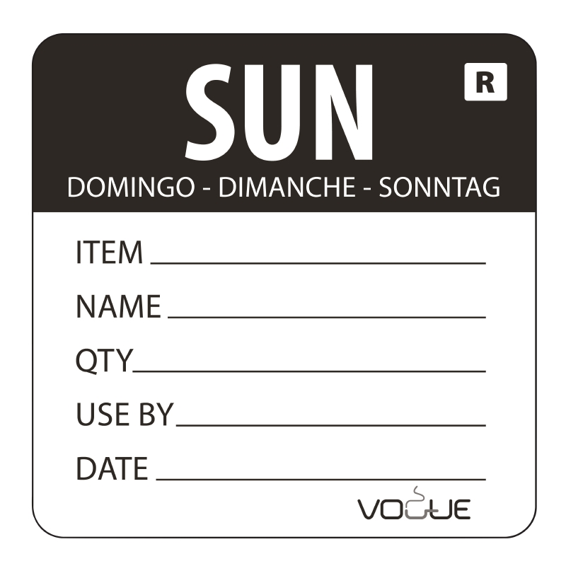 Colour coded food safety labels to correspond with your day-of-the-week rotation system. See at a glance when food was prepared. Indicates use - by date on ready to eat foods. Easy to remove leave no residue. Supplied in rolls of 500. Available in individual rolls or a set of 7 rolls - one for each day. Label size: 49x 60mm.