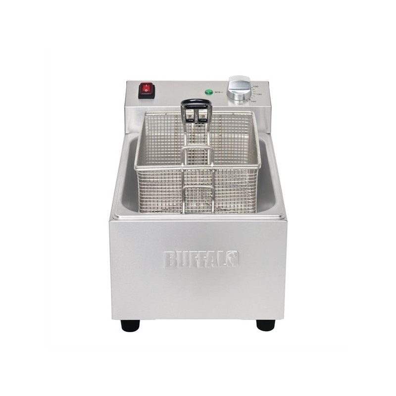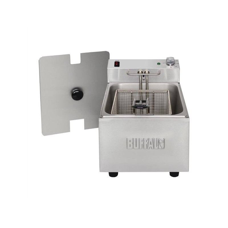 Buffalo FC256 With a robust stainless steel design and lift off lid this powerful deep fat fryer from Buffalo is a great value high output solution for busy commercial caterers. The 5 litre tank is capable of handling high demand periods and the adjustable thermostat ensures you maintain control of the entire cooking process.