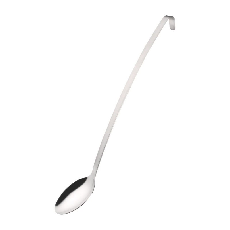 This premium quality stainless steel serving spoon has a long handle allowing you to stir and serve from deep pots while keeping your hands clear of heat sources. Ideal for use in any number of catering establishments.
