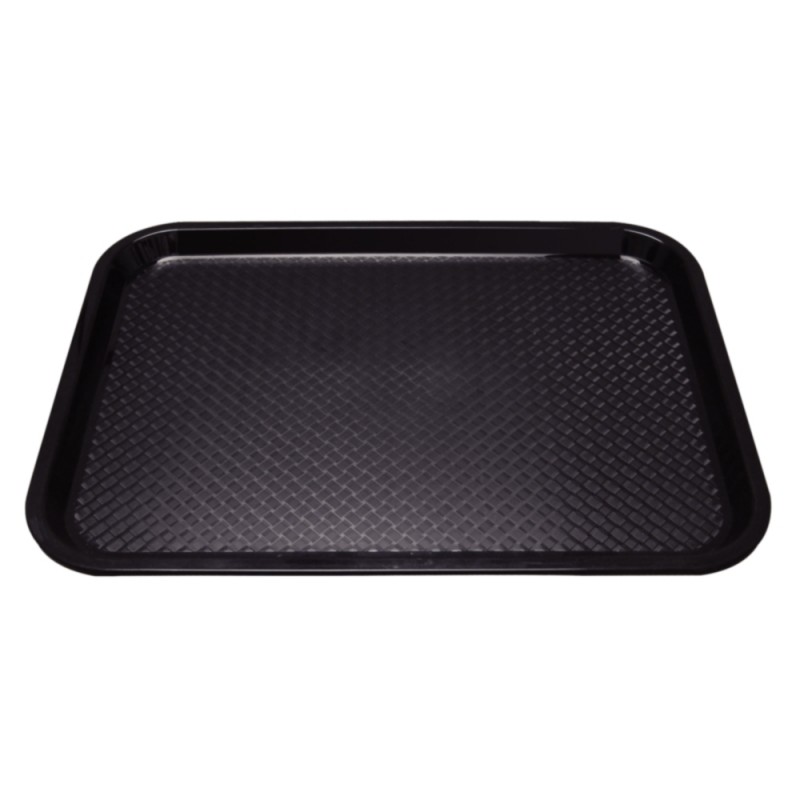 Textured surface helps reduce slipping. This black tray is made from easy clean polypropylene.