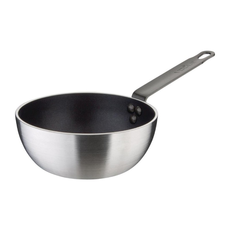 The smallest of our range of Vogue saut pans this product is perfect for managing smaller quantities of food. Its aluminium structure ensures even heat distribution and is perfect for browning or searing all kinds of vegetables and meat. Coated in a non-stick resin to guarantee you get great results every time.