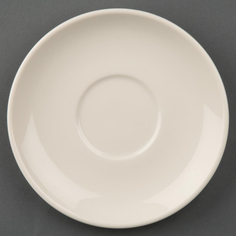 Designed with a simple clean shape in a soft ivory colour this stacking saucer from Olympia Ivory will impart a contemporary feel to your hot drinks service. Ideal for use in cafs hotels or restaurants this saucer is made from fully vitrified porcelain which gives heat and shock resistance as well as high glaze durability. The saucer is oven Microwave and dishwasher safe allowing it to withstand the rigours of a busy catering service. Its stackable design also helps maximise storage space.