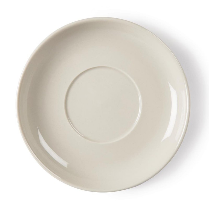 Designed with a simple clean shape in a soft ivory colour this cappuccino saucer from Olympia Ivory will impart a contemporary feel to your hot drinks service. Ideal for use in cafs hotels or restaurants the saucer is made from fully vitrified porcelain which gives heat and shock resistance as well as high glaze durability. The saucer is oven Microwave and dishwasher safe allowing it to withstand the rigours of a busy catering service.