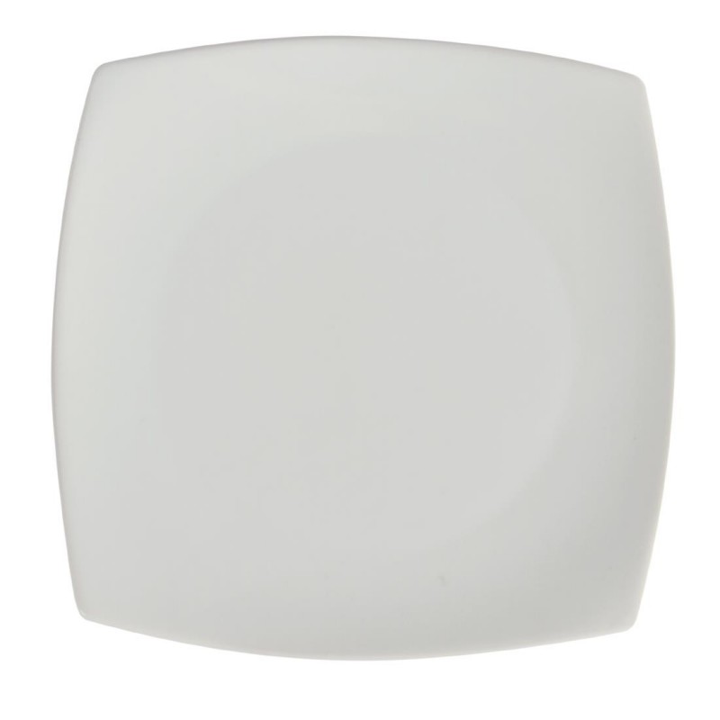 An appealing pure white rounded square plate from Olympia designed to provide a great value and hardwearing porcelain crockery solution for busy hotels canteens casual dining restaurants and cafs. Strengthened rolled edges ensure the plate is chip resistant and the fully vitrified body gives great glaze durability making it ideal to withstand the rigours of the professional catering environment. The plate is stackable helping maximise storage space and oven microwave dishwasher and freezer proof.