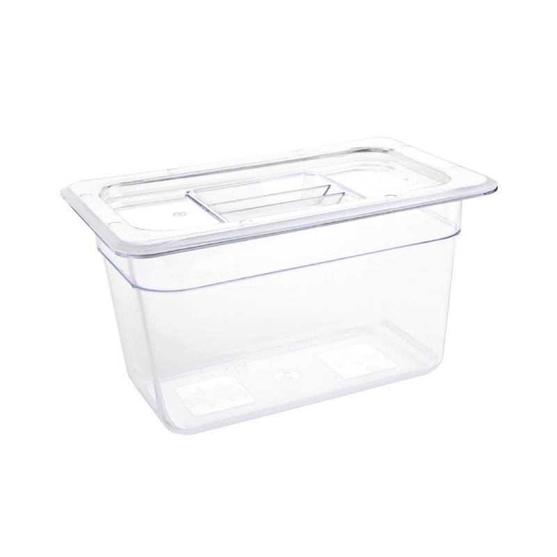 Virtually unbreakable polycarbonate remains cool to the touch for efficient handling. Lids and containers are dishwasher safe for easy cleaning. Temperature range from -40C to 100C.Polycarbonate material is dishwasher safe and pans have been designed to drip dry quickly. Containers are lightweight and stackable. Lids sold separately.