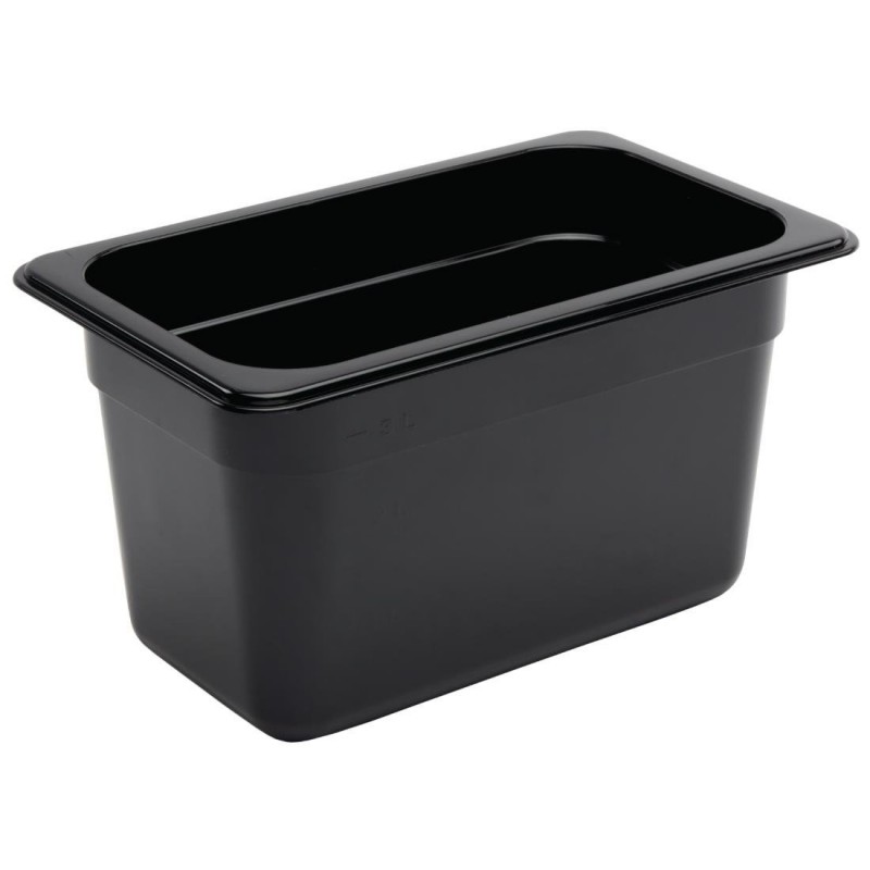 Vogue Polycarbonate 1/4 Gastronorm Container 150mm Black