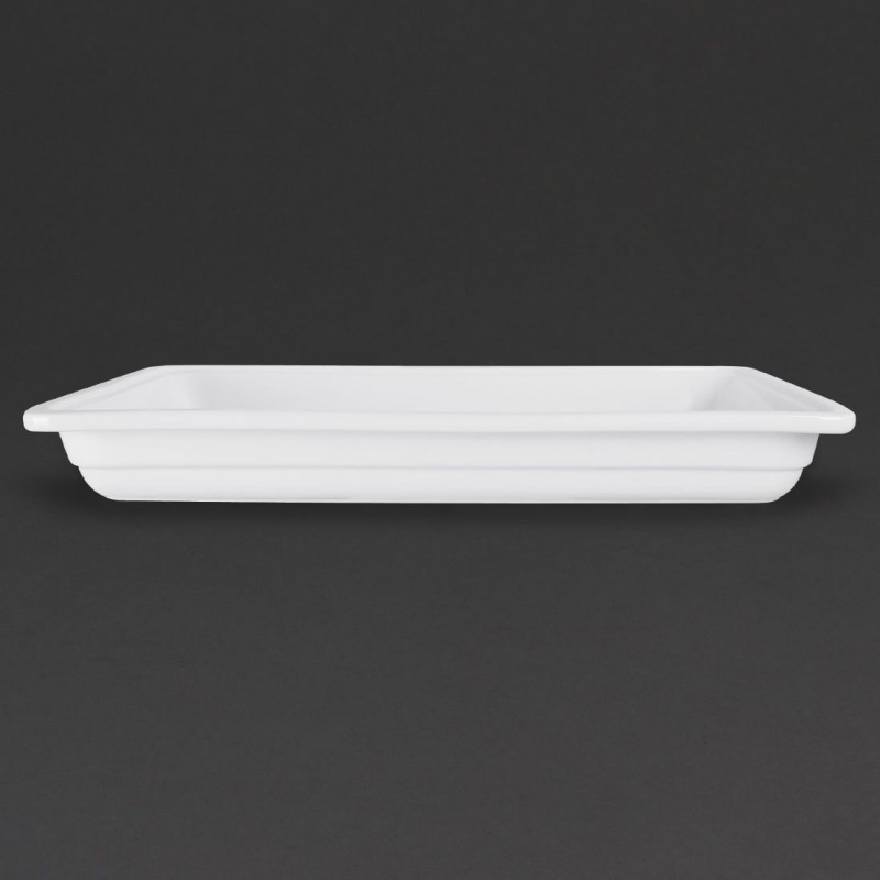 Olympia whiteware 1/1 sized gastronorm dish ideal for buffets in the chilled display cabinet or for taking food straight from the fridge to the table. Our new range of porcelain gastronorms add that touch of style whilst maintaining the practicalities required when serving food.