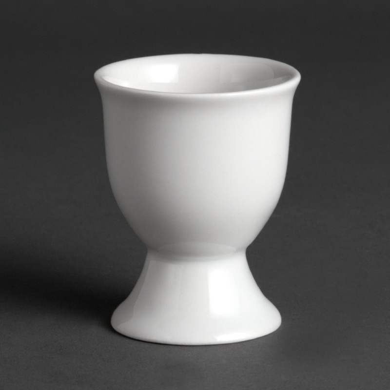 An appealing pure white 2x egg cup from Olympia designed to provide a great value and hardwearing porcelain crockery solution for busy hotels canteens casual dining restaurants and cafs. Strengthened rolled edges ensure the cup is chip resistant and the fully vitrified body gives great glaze durability making it ideal to withstand the rigours of the professional catering environment. The egg cup is oven microwave dishwasher and freezer proof.
