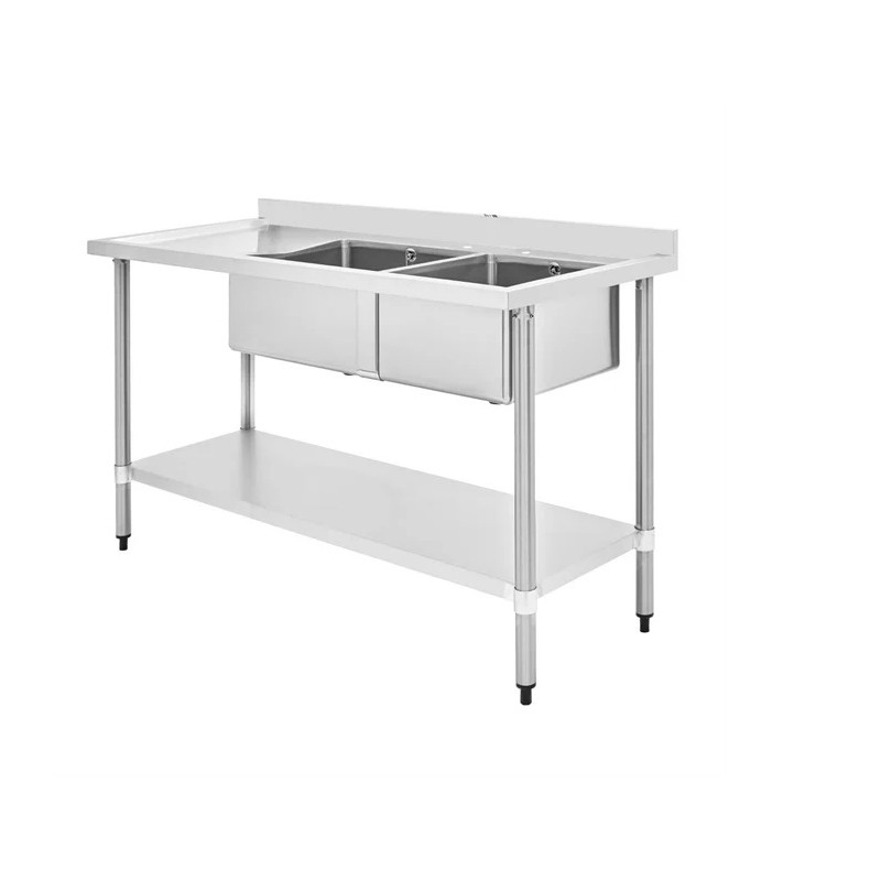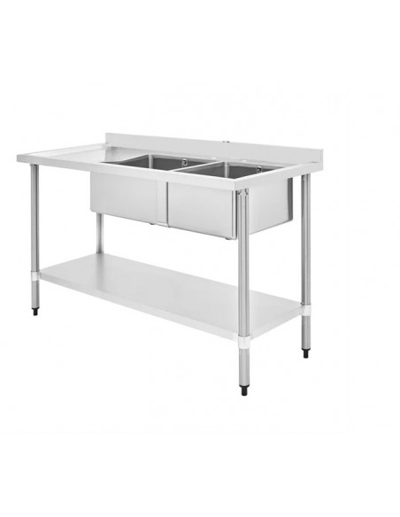 Stainless Steel Sink Double Bowl Left Hand Drainer 1500mm. Create an efficient and hygienic kitchen environment with this 1500mm wide double bowl sink unit from Vogue. The sink is made from a stainless steel material that allows easy cleaning and giving it the durability to withstand daily use in any busy commercial kitchens. The unit also features an under shelf that provides of extra storage space for a variety of cleaning chemicals, equipment and other items. Double Bowl Sink with Left Hand Drainer is constructed from high quality 304 Stainless Steel, it is designed to be extremely durable and easy to maintain, making it perfect for creating a practical and hygienic washing area within a fast paced and demanding commercial environment.