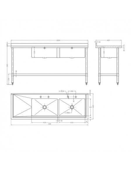 Size: 900(H) x 1800(W) x 670(D)mm Dual sink bowl with left hand drainer