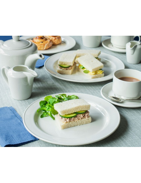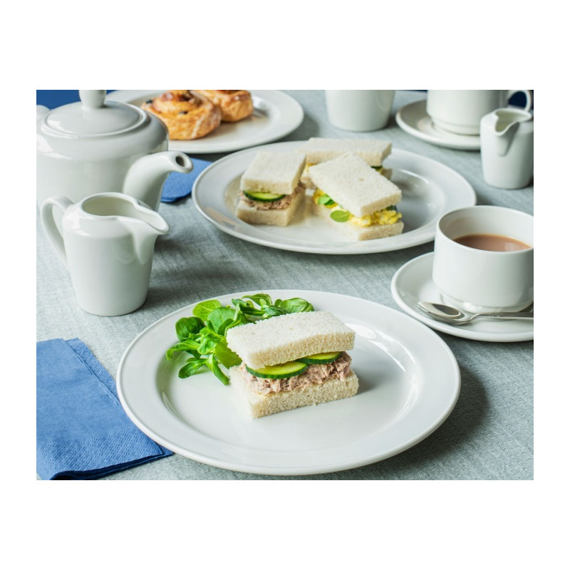 Combining excellent presentation with practicality Simplicity White is ideal for any casual dining occasion from hotel breakfast through caf lunch to pub dinner. This slimline plate complements all types of menu and food presentation by providing a versatile and simple backdrop. The plate is made from a strong and highly durable ceramic body making it easily able to withstand the trials of daily use is microwave dishwasher and freezer proof and has great heat retention for efficient service.