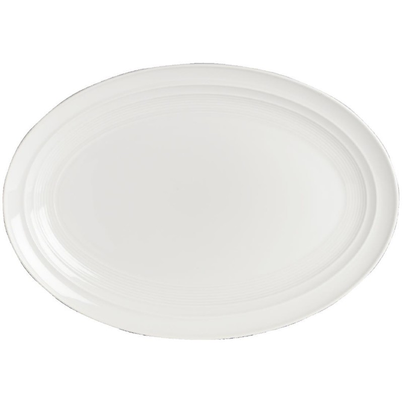 This porcelain 1 oval platter from the Aura collection creates a superb setting for fine dining adding a stylish emphasis to every dish. With a cool blue-white finish and durable reflective glaze Aura has been developed to meet the demands of modern food presentation combining contemporary design with classic practical features.
