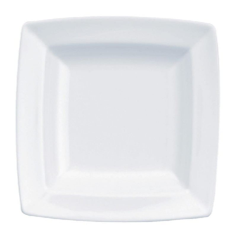 This square plate from the Energy collection by Churchill offers both contemporary chic elegance and the pure whiteness of fine china making it ideal for fine dining restaurants and sophisticated bistros. The simple yet elegant design enhances menu presentation with a square rim and extra depth to frame the food. The plate's strengthened body and superior glaze ensures it will withstand the rigours of daily use and dishwashing the stackable design helps maximise storage space and the fully glazed foot protects surfaces against scratching.