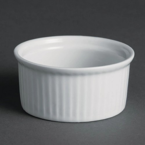 Add cost-effective and practical crockery to your table services, with these whiteware ramekins from Olympia. Strengthened, rolled edges ensure that the ramekins are chip resistant, whilst the fully vitrified body provides added durability and colour retention - making them able to withstand the rigours of the professional catering environment.
