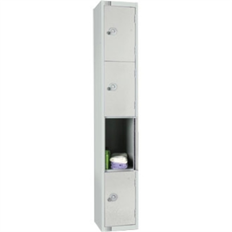 Robust quality steel locker with camlock welded plinth between doors to improve inter-compartment security and reinforced door.