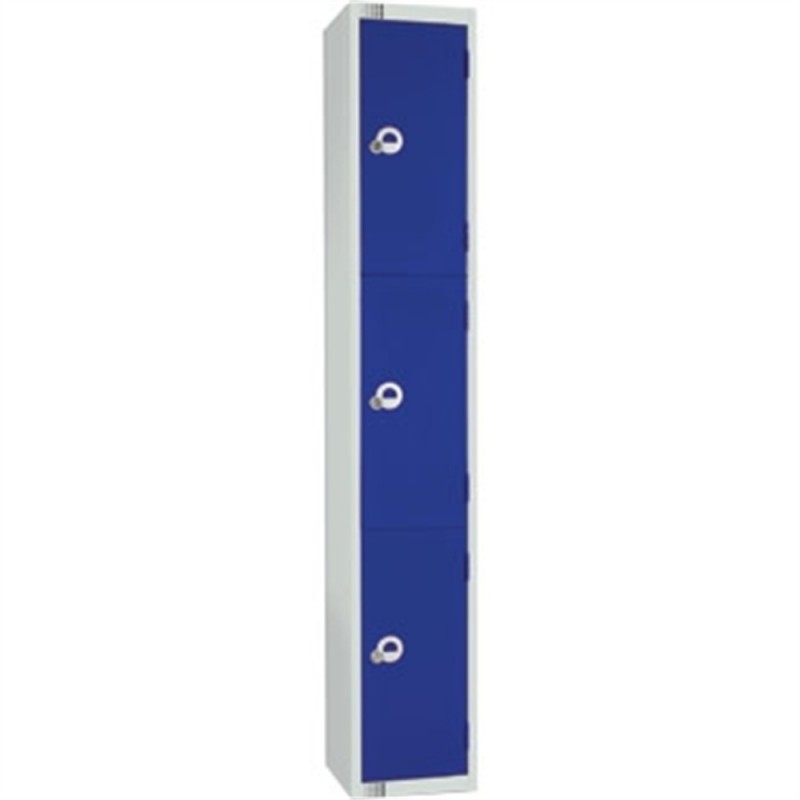Robust versatile lockers with welded plinth between doors to improve inter-compartment security.
