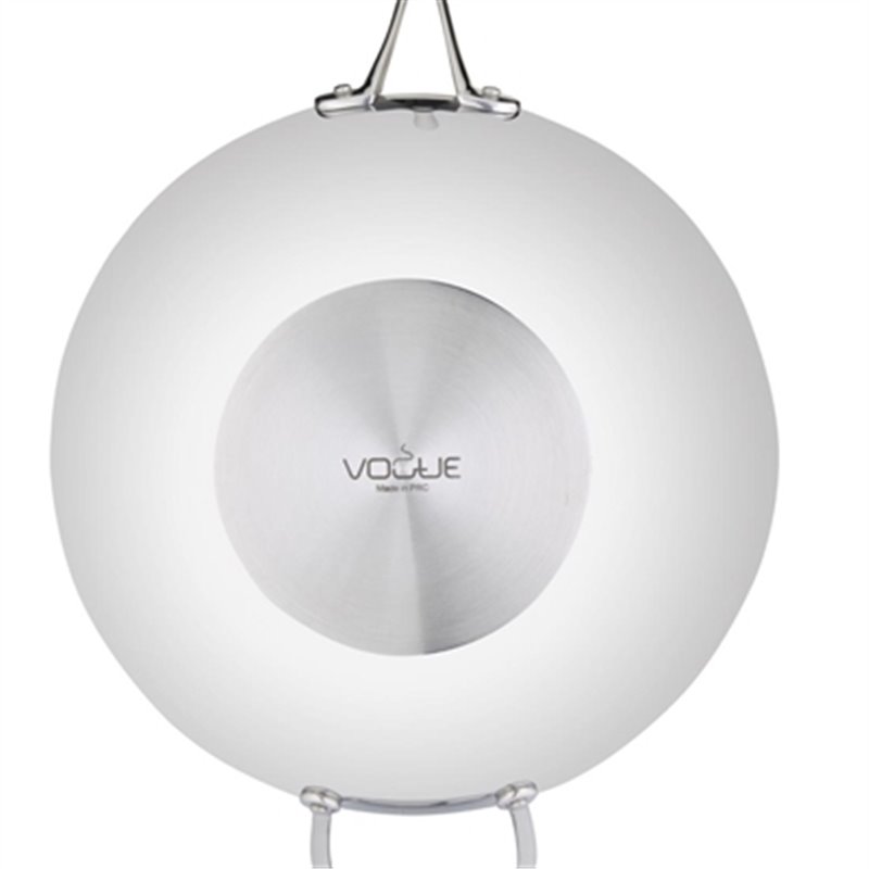 This Vogue Tri-Wall heavy duty wok has a flat base and an aluminium thermocore sandwiched between stainless steel walls for even heat distribution without hot-spots making it the perfect pan for all manner of catering tasks.