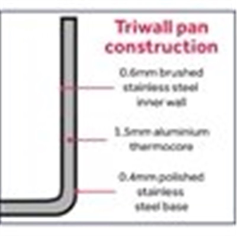 - Aluminium thermocore sandwiched between stainless steel walls for even heat distribution