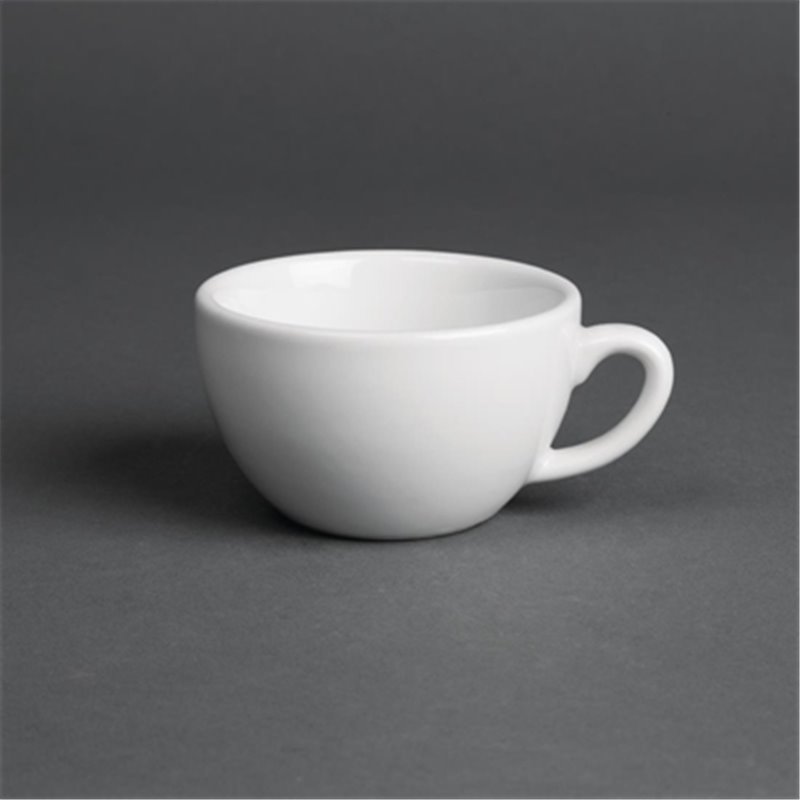Exceptional quality vitrified porcelain from the Classic White range; these 90ml espresso cups guarantee durability versatility and timeless design.