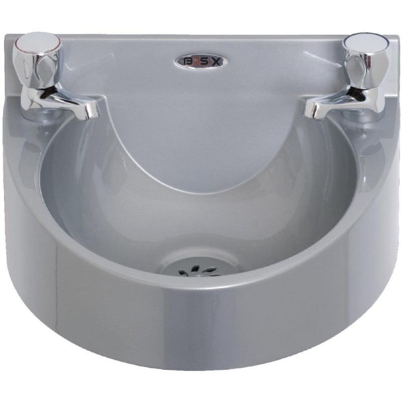 British-made small yet robust ABS polycarbonate basin ideal for hand-washing in commercial kitchens. Taps included with optional matching splashback.