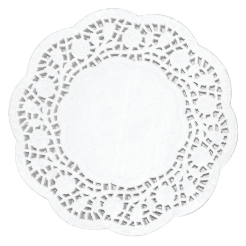Rose design 6.5" doilies for attractive food and beverage presentation in tea rooms cafs and hotels.