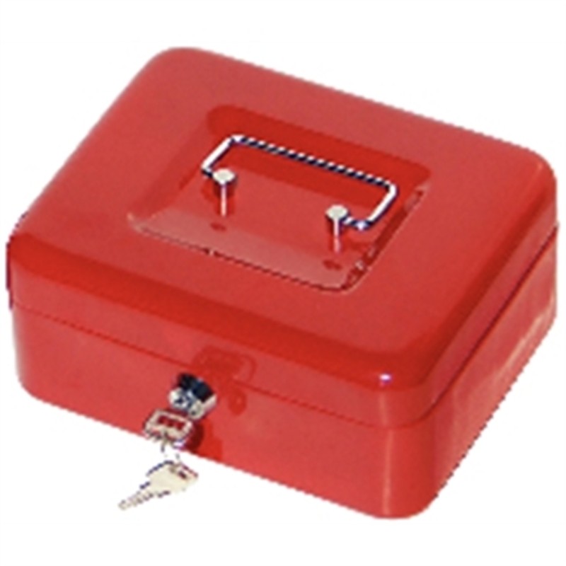 Sturdy and lockable petty cash box with carry handle. Ideal for offices. Supplied with plastic divider for coins and notes