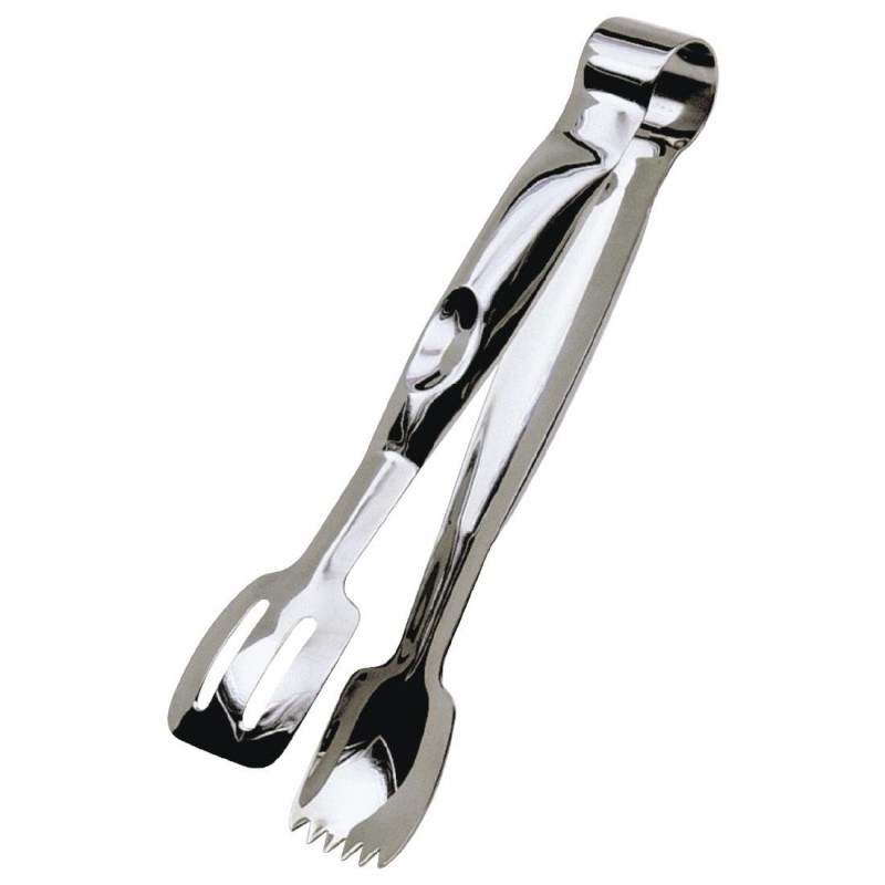 These stainless steel buffet tongs are perfect for use in any number of environments and feature innovatively designed handles which remain cool to the touch. They also feature a rounded end for ease of storage and are dishwasher safe.