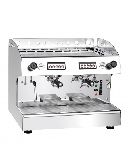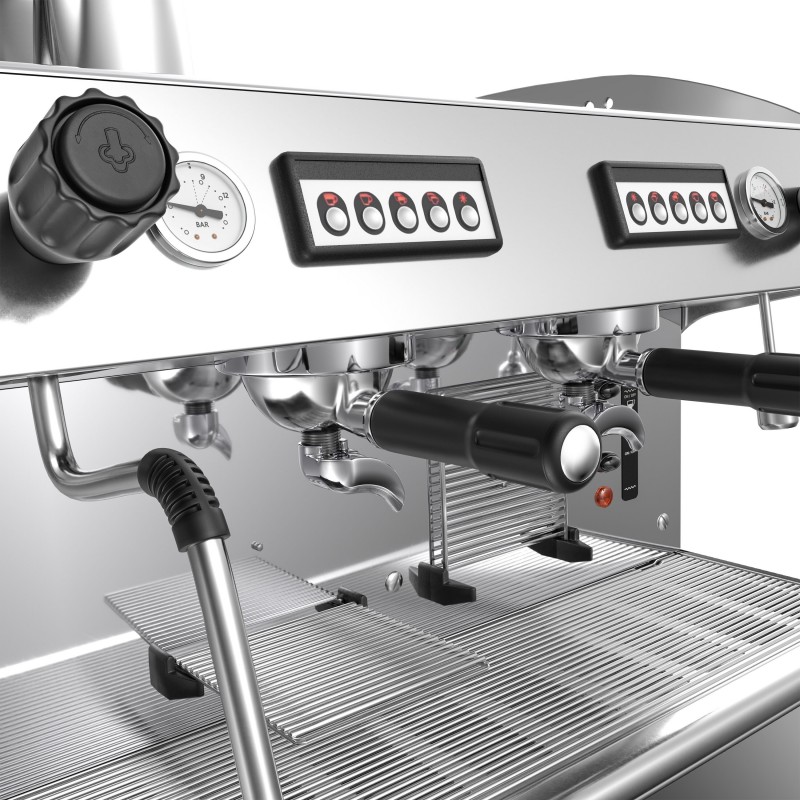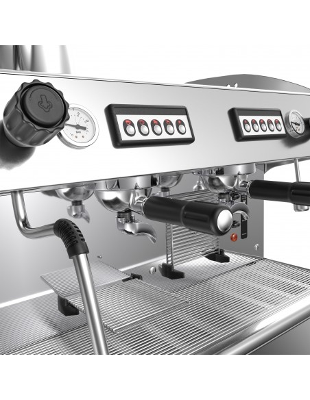 Brew espresso to perfection with this professional-grade espresso machine, engineered for cafes, restaurants, hotels, and high-volume beverage services. Featuring a mechanical pre-infusion system, dual brew groups, and an illuminated control panel, this machine ensures precision, speed, and rich espresso flavor with every shot.