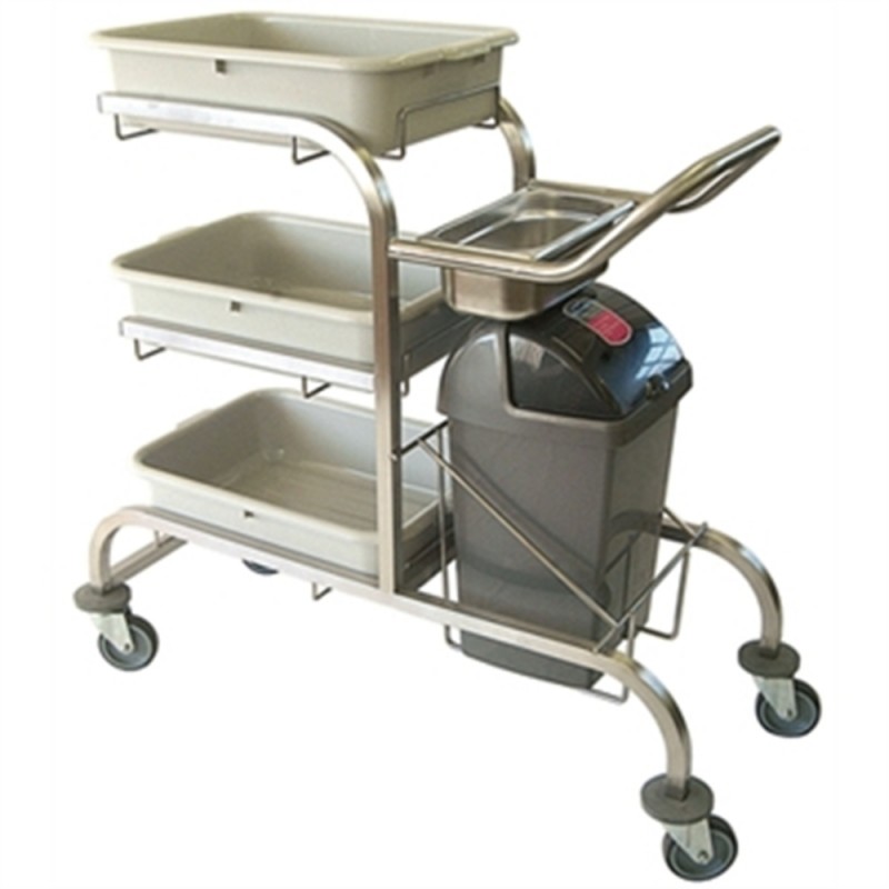 Ideal for hotels schools or hospitals for efficient transportation and collection of plates and cutlery. Fully welded trolley with easy wipe clean surface and a 22Ltr flip top bin included. Areas for 1/3 gastronorm container and 3 x J849 tote boxes (sold separately).